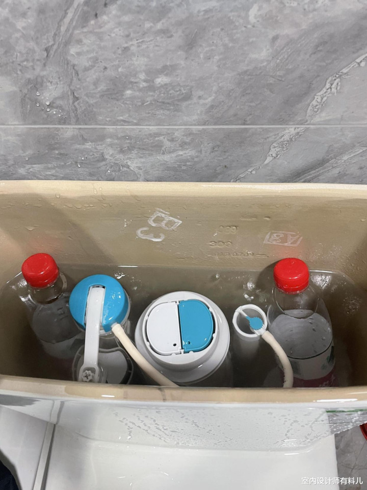 “以前,老一辈往水箱中放两块砖,现在可以放矿泉水瓶!”师傅让找两个装满水的矿泉水瓶,他把瓶子放进水箱中,既不影响冲水,一次就又能减少两瓶子水的用水量。